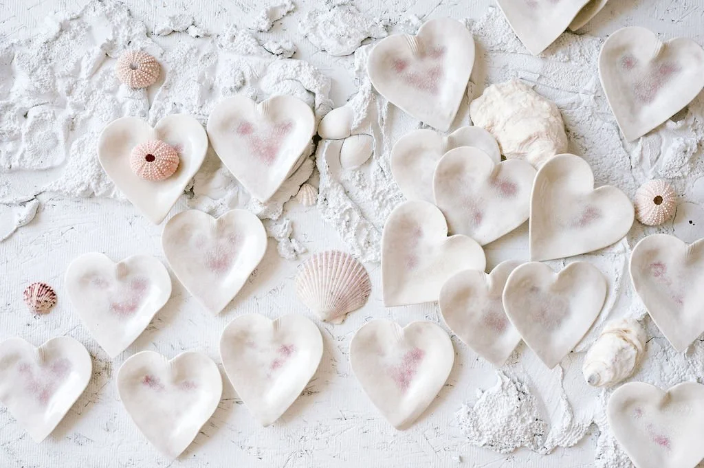 Delicate hand formed hearts in varying shades of pale pink. The perfect place to hold your favorite jewels or serve up Valentine’s Day chocolates.